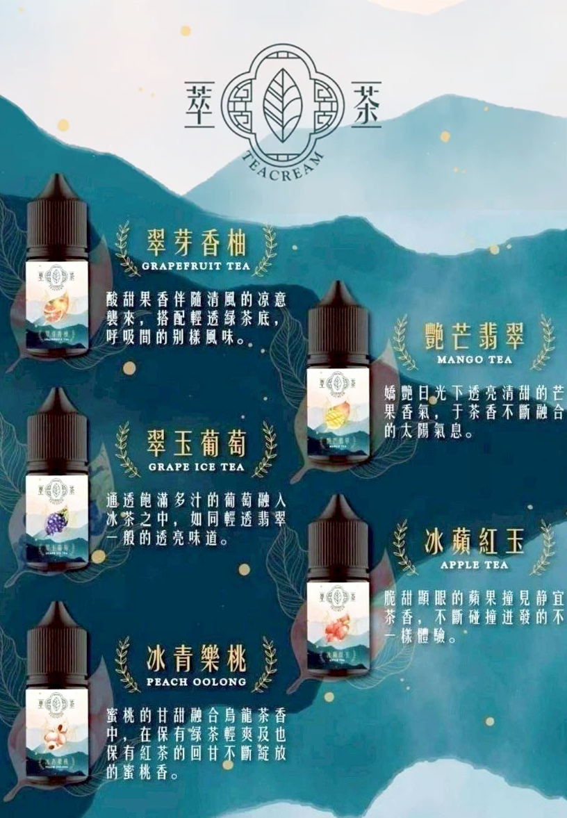 [新品上市] [1分涼]萃茶系列 翠芽香柚|艷芒翡翠|翠玉葡萄|冰蘋紅玉|冰青樂桃|茉莉綠茶|鐵觀音|古香龍井|梨山烏龍|午後紅茶|香知香片小煙油 30ML 30MG